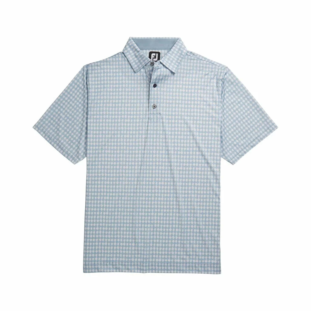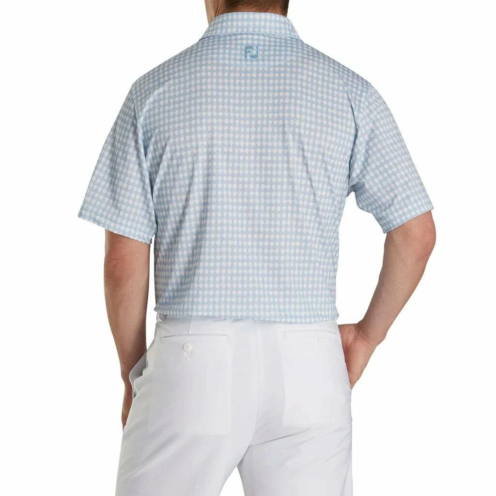 This FootJoy Lisle Gingham Fray Print Self Collar Men’s Polo is the perfect golf shirt for all golf outings. With double stitched seams for complete durability and locked stitched hem to reinforce giving it that tailored look. This shirt also has an extended back for easy tuck in.