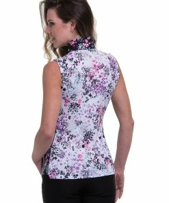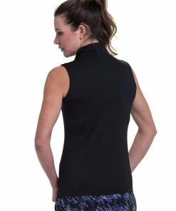 EP NY EP New York Mock Zip Black Multi Womens Sleeveless Golf Polo