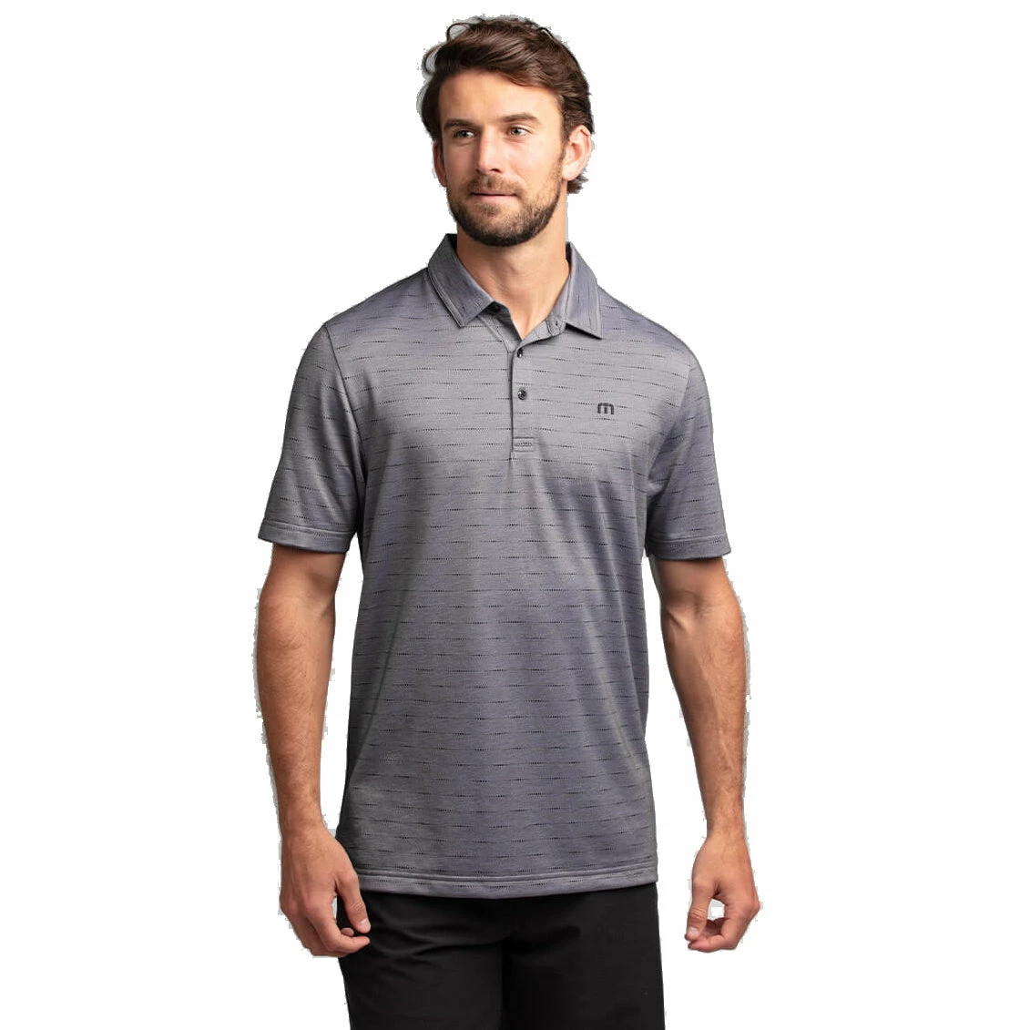 Enjoy the links or a night out with the fellas in the Travis Mathew Attached Polo. This polo has an all-over stripe pattern for style and the enhanced stretch and wrinkle resistant fabric will all work together to have you looking super stylish. The material is also quick drying and moisture wicking to keep you dry and comfortable.